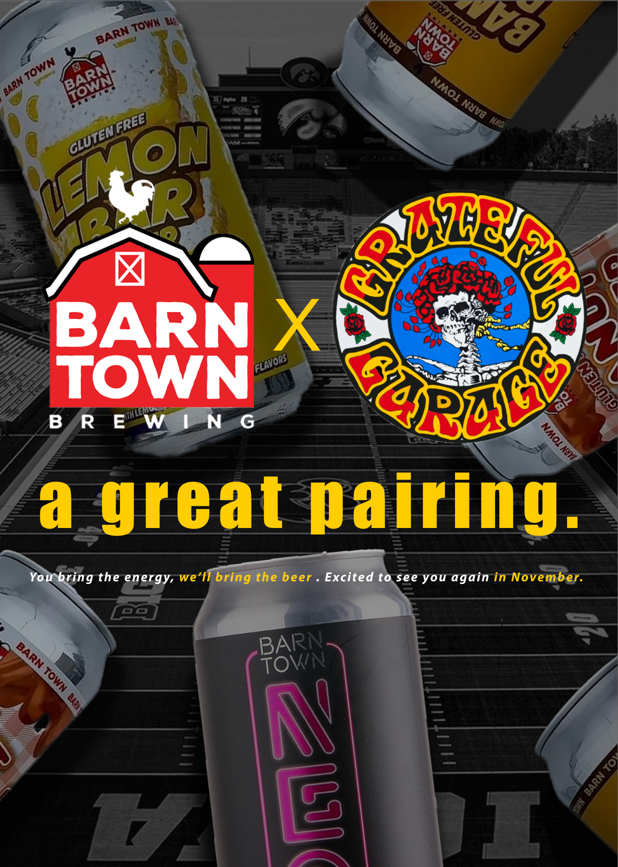 I wanted the design to feel energetic and deeply tied to the club’s game day culture. The background features Kinnick Stadium, the home of the Hawkeyes and backdrop of the club’s gatherings, setting the tone with a strong sense of place. To emphasize the collaboration, I gave both the tailgating club and Barn Town Brewery logos prominent placement so the partnership was instantly recognizable. I also added a cascade of IPA cans to showcase Barn Town’s variety and bring motion and excitement into the composition.