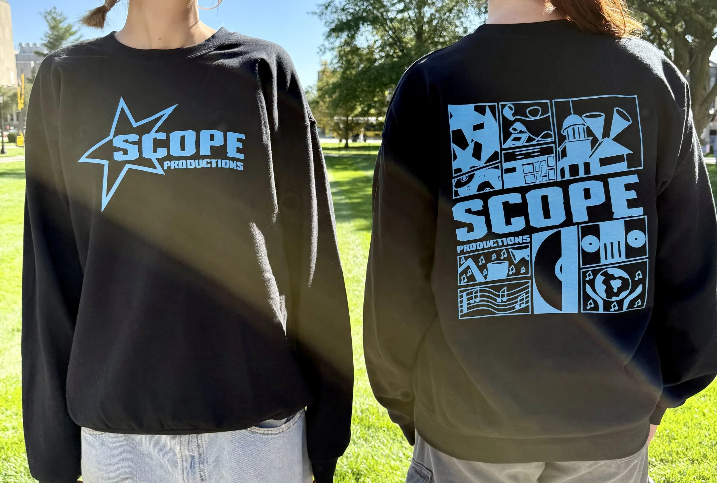 For this project, I created custom merchandise for Scope Productions to wear during the 2025 Homecoming Concert. I designed the pieces to align with the official event poster, keeping the colors and overall vibe consistent. The back features a collage-style design that commemorates some of Scope’s biggest events from the 2024–2025 concert season, giving the merch a sense of history and identity without needing to include every event. Allowing new and old members to be connected with the design.